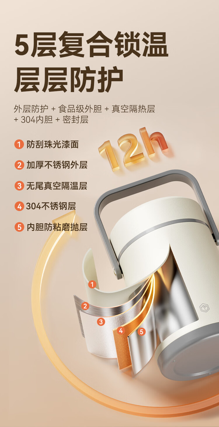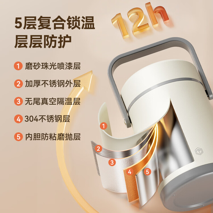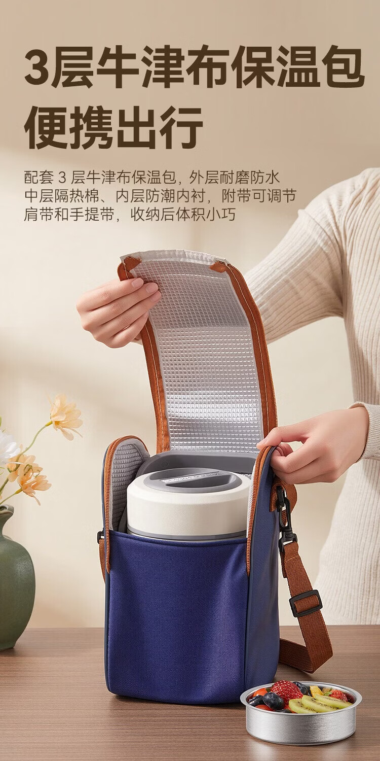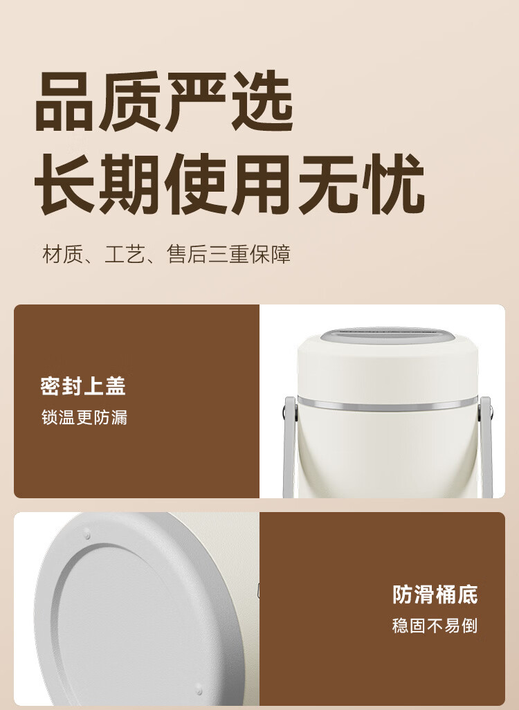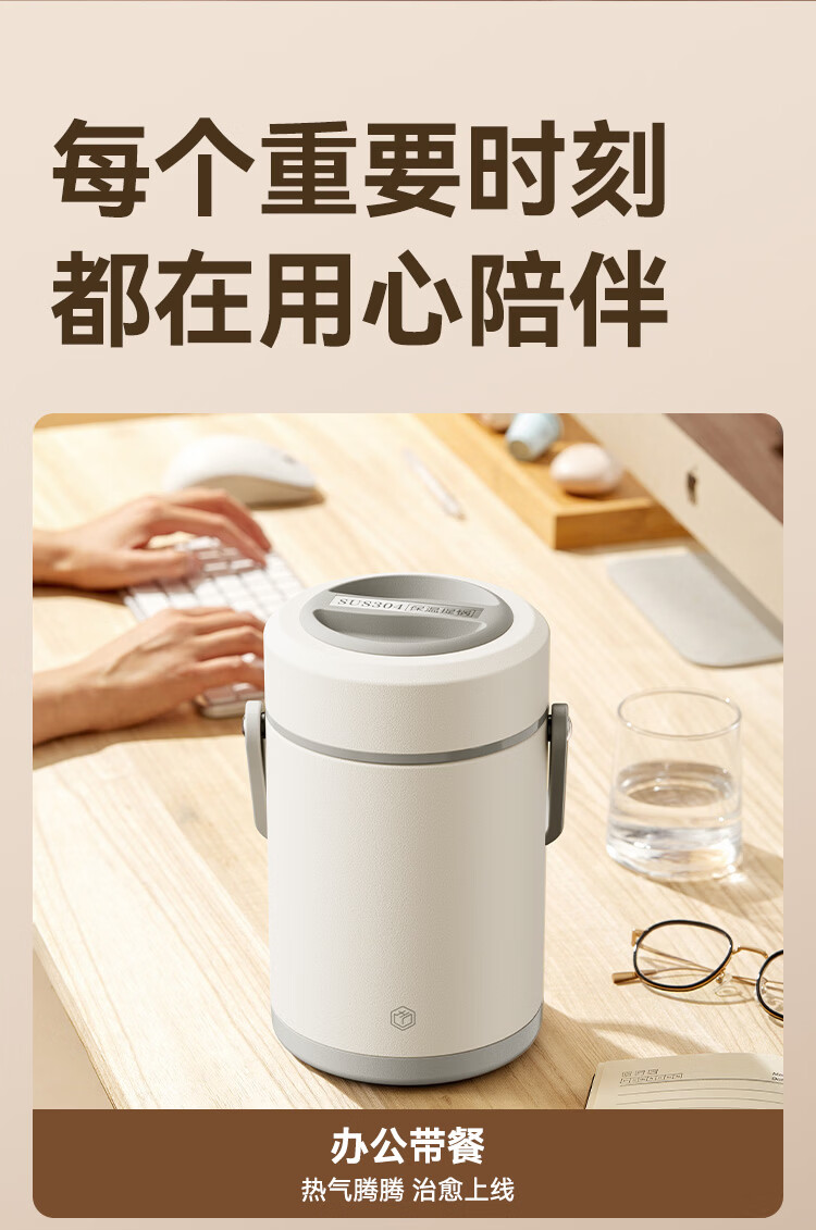 京东京造 保温桶 304不锈钢饭盒上班族小学生带盖餐盒三层2L 配保温袋