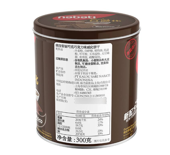 福利专区 > 酒水零食 >美味零食 >首荟商城官方旗舰店 >纳宝帝丽巧克巧克力味威化饼干300g(次日送货)