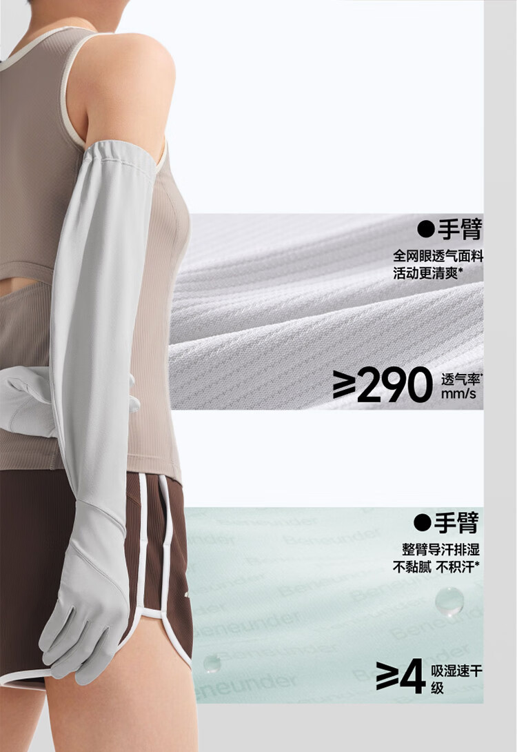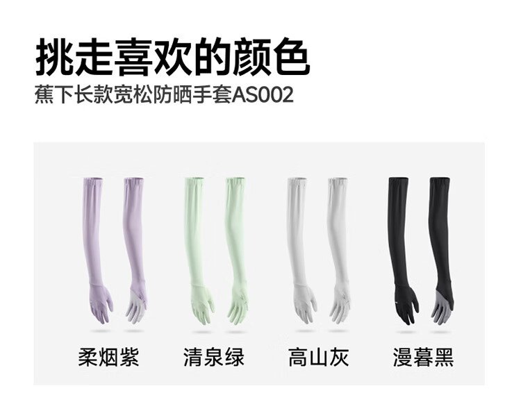 蕉下(beneunder)防晒袖套长款防晒手套女冰袖女防紫外线高山灰AS002
