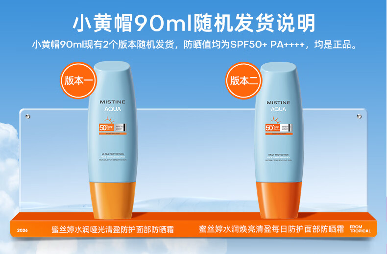 Mistine蜜丝婷小黄帽面部水感养肤防晒霜乳90ml SPF50+学生礼物